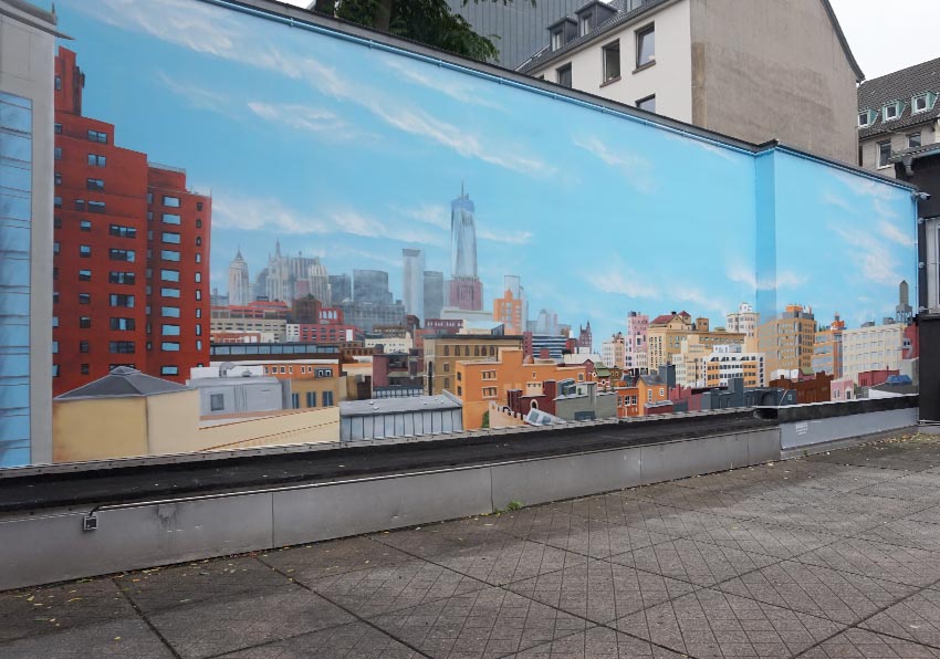 Künstlerische Gestaltungen einer New York Skyline in einem Innenhof für Firma Swedex GmbH in Essen